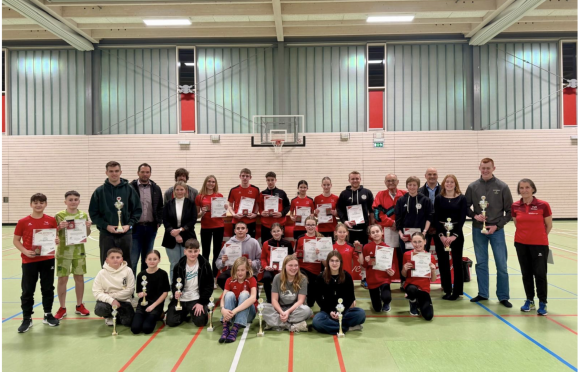 Neben dem klassischen Wettkampfsport bildet die Abnahme des deutschen Sportabzeichens bereits seit einigen Jahren einen wichtigen Grundpfeiler des Vereins. Unter der Anleitung von Janet und Stephan Marker fanden auch in 2025 viele motivierte Sportlerinnen und Sportler den Weg in die Sportabzeichengruppe bzw. ins Dierdorfer Stadion zum großen Sportabzeichentag Anfang Mai 2025. Hier treffen Klein und Groß zusammen, um die Freude an der Bewegung zu teilen. Der Spaß steht im Vordergrund, aber natürlich ist auch Ehrgeiz gefragt, wenn es um die Erfüllung der jeweiligen Leistungsgrenzen für die Sportabzeichen in Gold, Silber und Bronze geht. So ist es bemerkenswert, dass der TuS Dierdorf in 2025 insgesamt 118 Sportabzeichen abnehmen konnte. Insgesamt absolvierten 15 Familien das Familiensportabzeichen. Eine tolle Leistung aller Absolventen, die auch von VG-Bürgermeister Manuel Seiler im Rahmen der Urkundenübergabe der Sportabzeichen nochmals gewürdigt wurde. Gerade in Zeiten des steigenden Bewegungsmangels sind diese Zahlen ein wichtiges Zeichen.