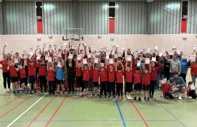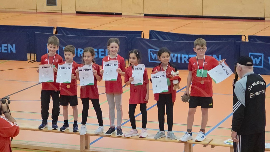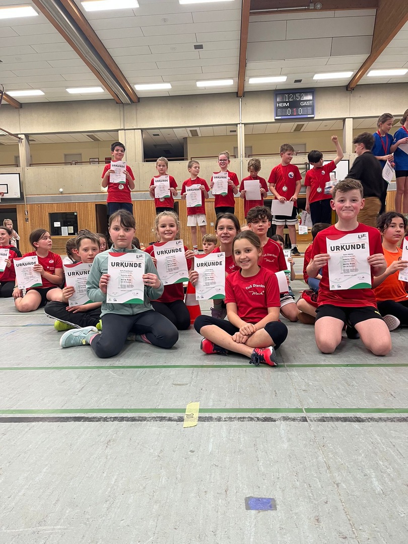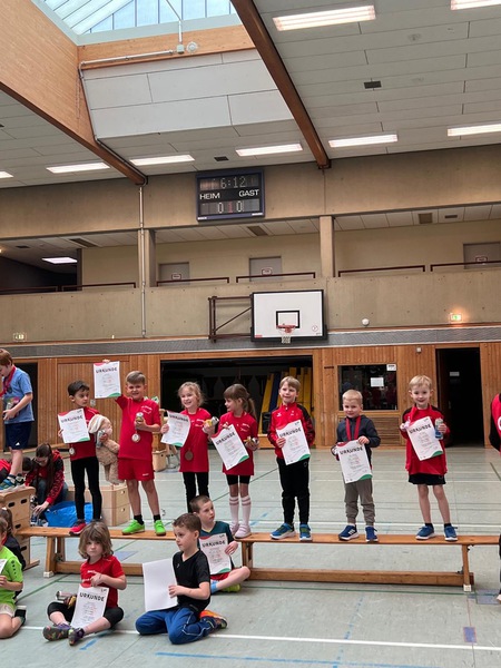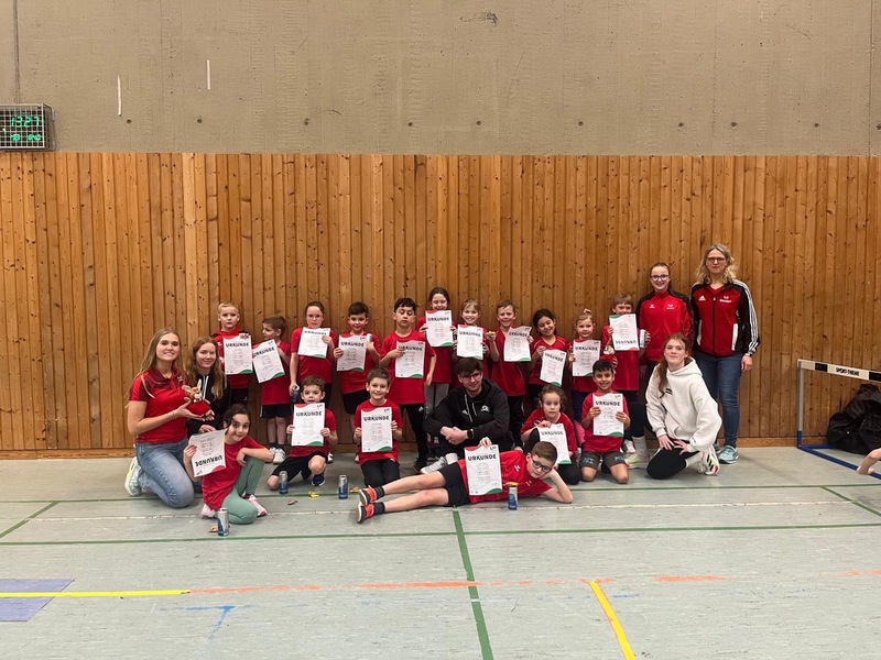 Viel wichtiger als die Ergebnisse waren am Ende aber sowieso die strahlenden Gesichter aller Teilnehmenden bei der Siegerehrung. Hier durfte sich unter dem Jubel der Zuschauer über eine tolle Urkunde gefreut werden. Wir gratulieren daher allen herzlich zu ihrer Teilnahme und den gezeigten Leistungen beim Hallensportfest. Ein Dank geht außerdem an alle Helferinnen und Helfer sowie die Übungsleiterinnen und Übungsleiter, die den Wettkampf vorbereitet und unterstützt haben.