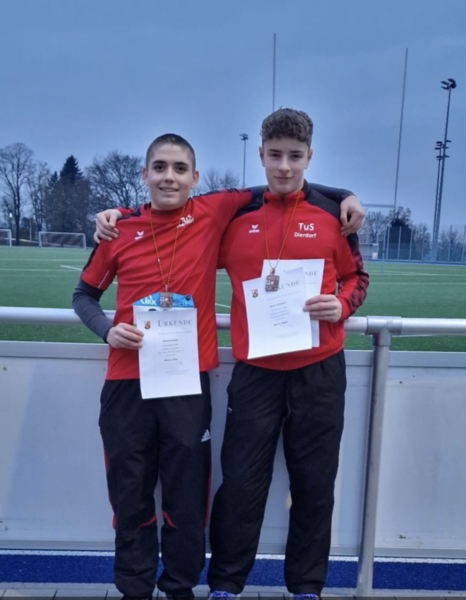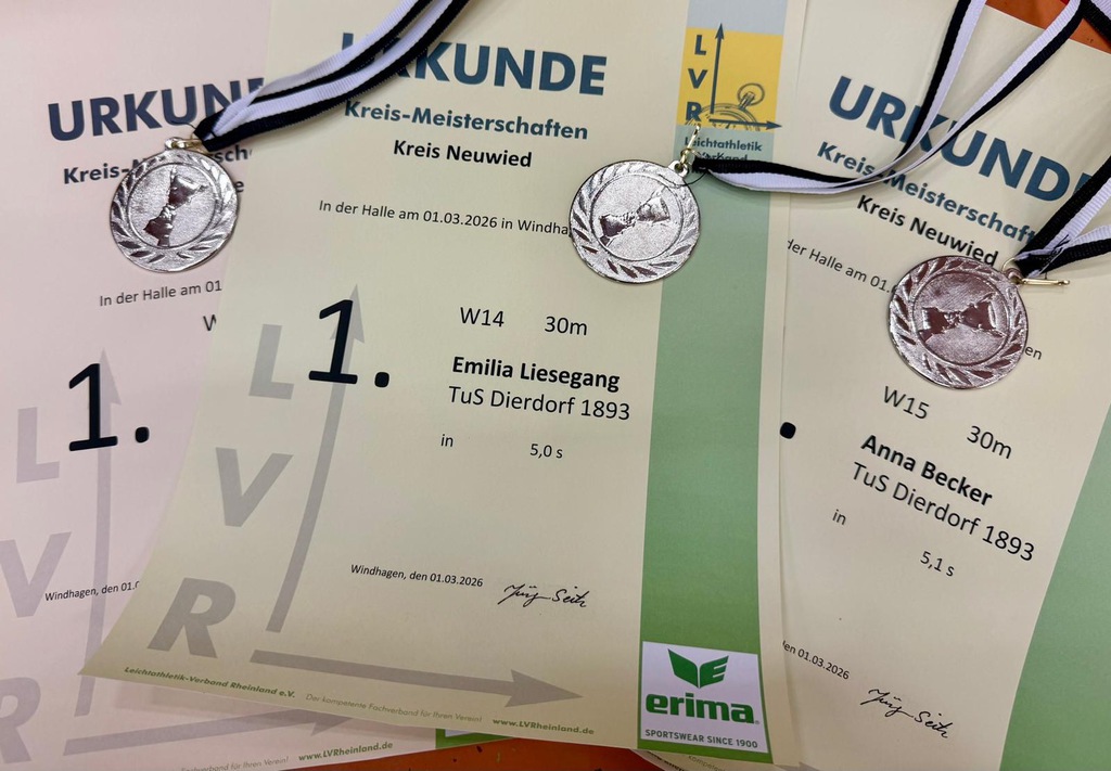 Am letzten Wochenende markierten bereits die Rheinland-Pfalz-Hallenmeisterschaften in Ludwigshafen den Auftakt in die neue Meisterschaftssaison. An diesem Wochenende ging es direkt weiter mit den Rheinland-Pfalz-Meisterschaften im Winterwurf in Alzey. Für den TuS Dierdorf waren die drei Wurftalente Runar Kneutgen, Matías Rudolph und Johanna Marker am Start. Dabei kehrten sie insgesamt mit drei Bronzemedaillen aus Alzey zurück. Runar Kneutgen belegte im Diskuswurf der M15 mit 34,29 m Rang 3. Mit dem Speer schrammte er auf Rang 4 und 30,31 m knapp am Podest vorbei. Matías Rudolph belegte im Diskuswurf der MU18 ebenfalls Platz 4 (27,92 m). Über seine Bronzemedaille durfte er sich im Speerwurf mit tollen 35,72 m freuen. Johanna Marker gelang in der U18 ebenfalls der Wurf mit dem Diskus auf Rang 3 (24,47 m). Mit dem Speer kam noch ein 4. Rang hinzu (23,66 m). Sie wagte sich zudem noch an eine dritte Wurfdisziplin und absolvierte ihren ersten Wettkampf im Hammerwurf. 17,38 m bedeuteten hier ebenfalls Rang 4. Herzlichen Glückwunsch an unsere drei Wurftalente. Die Ergebnisse gibt es hier nochmals zum Nachlesen.