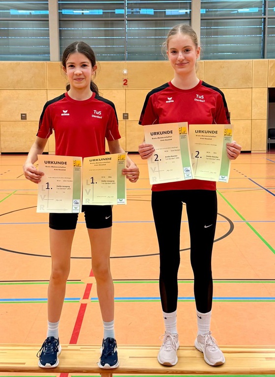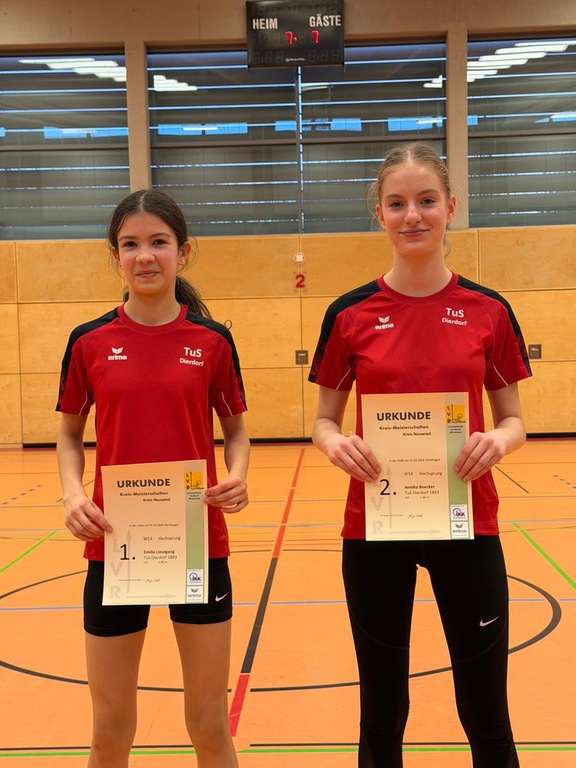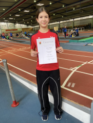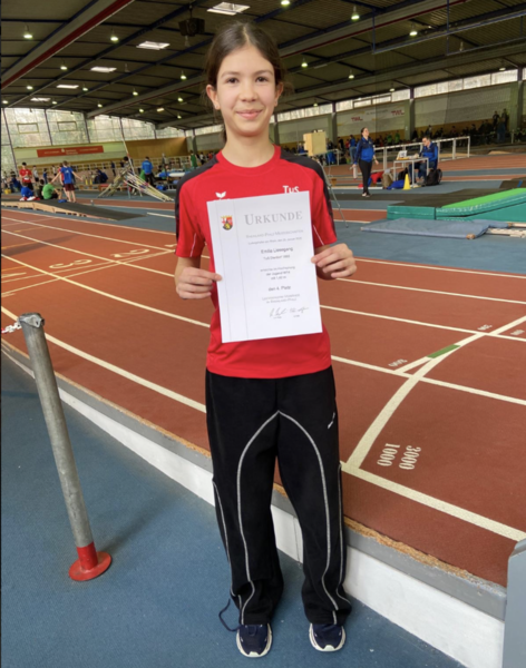 Bei ihren ersten Hallenmeisterschaften stellte sich Emilia Liesegang (W14) der Konkurrenz im Hochsprung. Auch sie zeigte ihr Können und sprang alle Höhen inkl. der 1,42 m im ersten Versuch. Diese Leistung brachte ihr in der Gesamtwertung einen sehr guten 4. Platz ein. Auch für Anna Becker (W15) war es der erste Hallenwettkampf überhaupt. Sie konnte wertvolle Erfahrungen im Sprint über die 60 m sammeln, wenngleich 9,29 sec. nicht für eine vordere Platzierung reichten. Auch hier an alle einen herzlichen Glückwunsch.