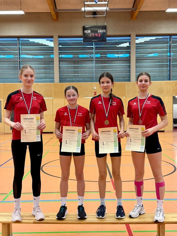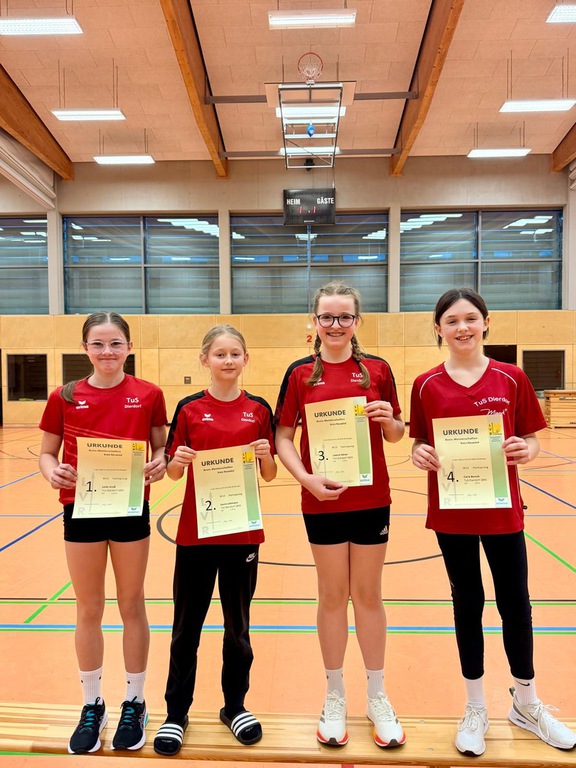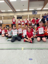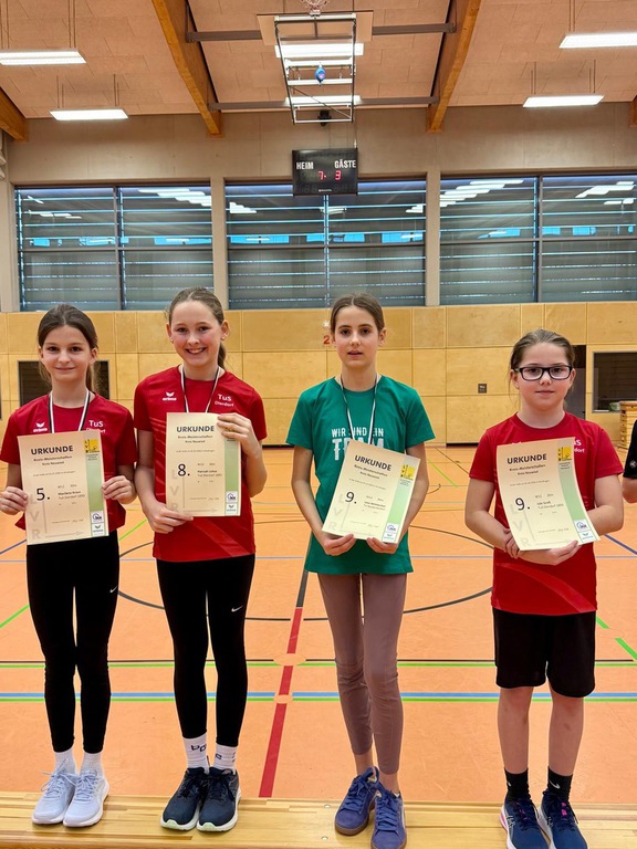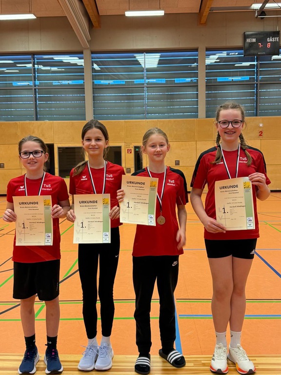 Spannend wurde es auch in der U10, wo sich die Teams bis zum Ende ein Kopf-an-Kopf-Rennen leisteten. So ist es nicht verwunderlich, dass es am Ende sogar einen geteilten 1. Platz gab, den die TuS Kängurus mit Paul Reinacher, Lea Liebsch, Alexandra Rommel, Levin Hörter, Emil Ehrenstein, Alina Altan und Fiona Grinko bejubeln durften. Die TuS Geparden (in der Besetzung Mike Danisch, Lotti Hümmerich, Ilay Bölükbas, Noel Jakobi, Arian Altan, Louisa Schmidt und Lenny Kopper) ergänzten das sehr gute Ergebnis mit einem 5. Platz.