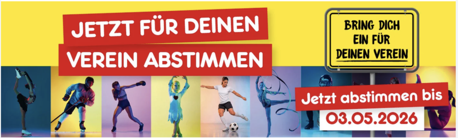 Bereits im letzten Jahr waren wir bei der Netto-Aktion dabei und auch in diesem Jahr möchten wir gerne wieder fleißig Spenden sammeln. Damit wir die Chance dazu bekommen, stimmt bitte über diesen Link bis zum 3.5.2026 für uns ab. Wenn wir genügend Stimmen erhalten, gibt's hoffentlich die Möglichkeit über Aufrunden beim Einkaufen und Pfandspenden Geld für die Vereinskasse zu sammeln.